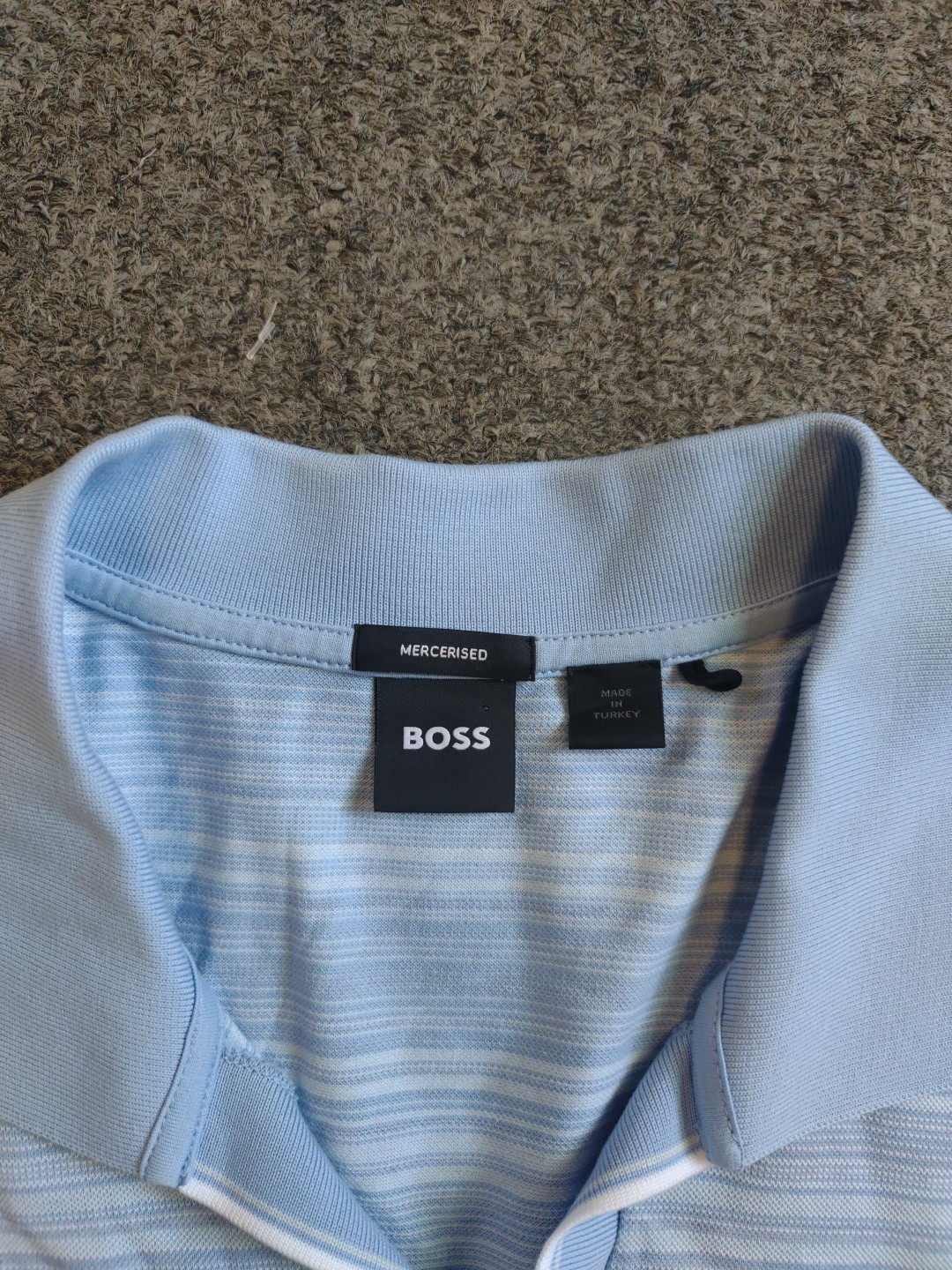 MENS HUGO BOSS MERCERISED SHORT SLEEVE LIGHT BLUE STRIPED POLO SHIRT SIZE XL