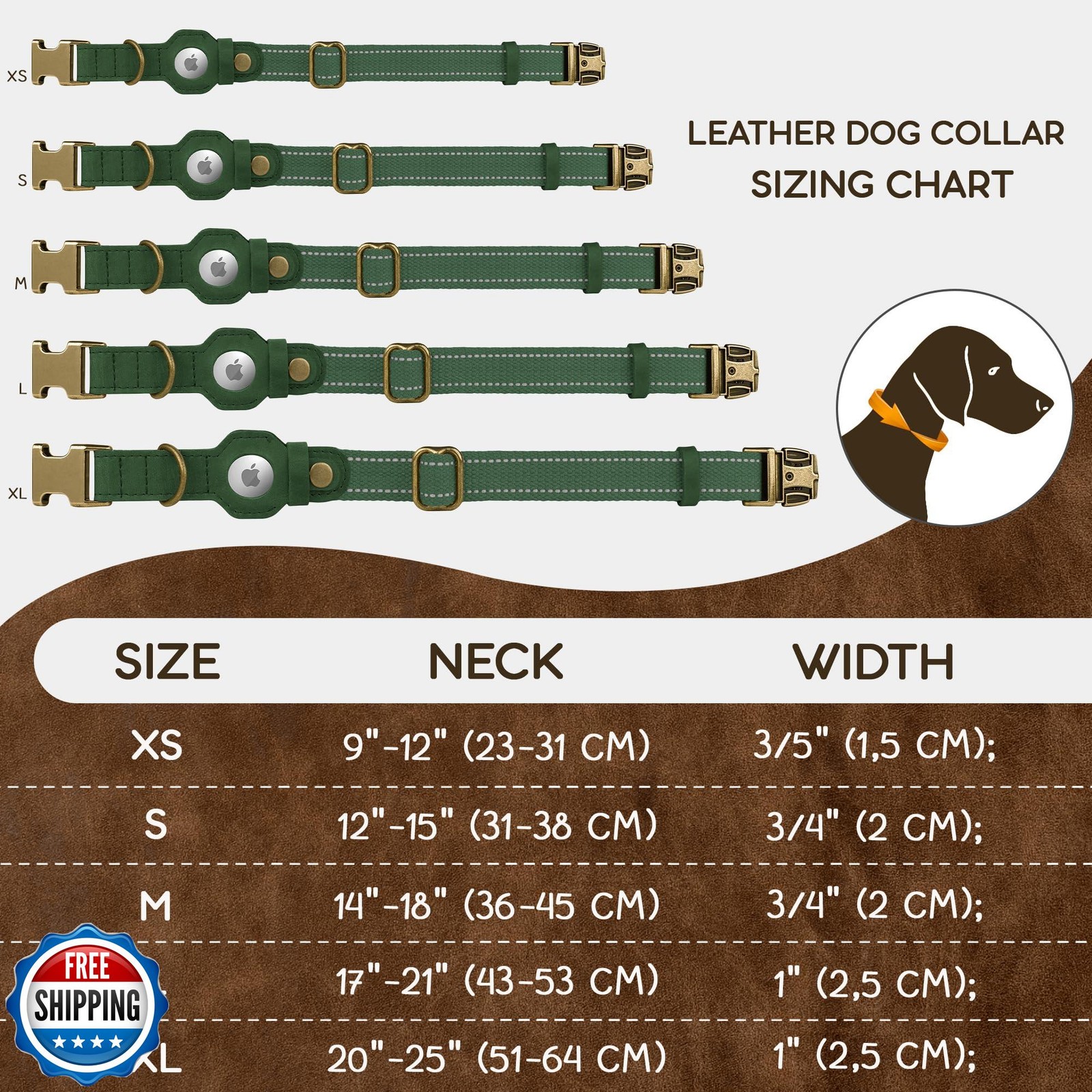 Reflective Leather Dog Collar with AirTag Holder - Soft Apple Airtag Dog Coll