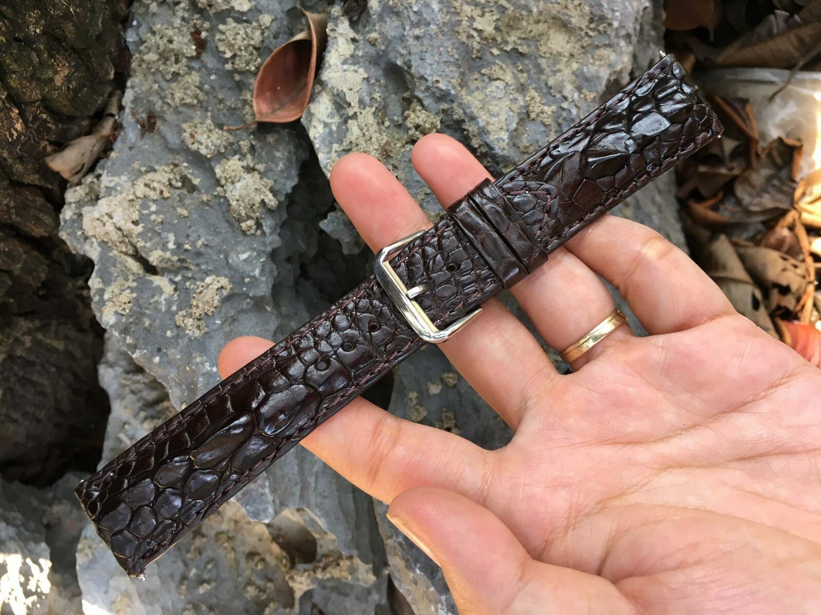 Brown Crocodile Hornback Leather Watch Band Men Genuine Watch Strap Handmade