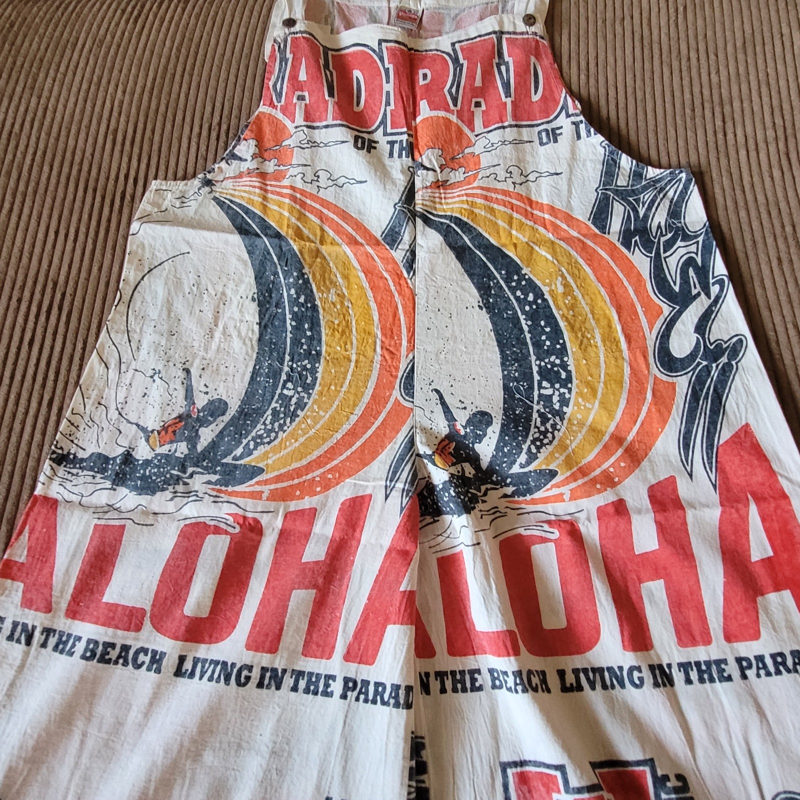 Flour Sack Aloha Overalls W/ Straps Hippie Cottage Core Boho Size Large Garden