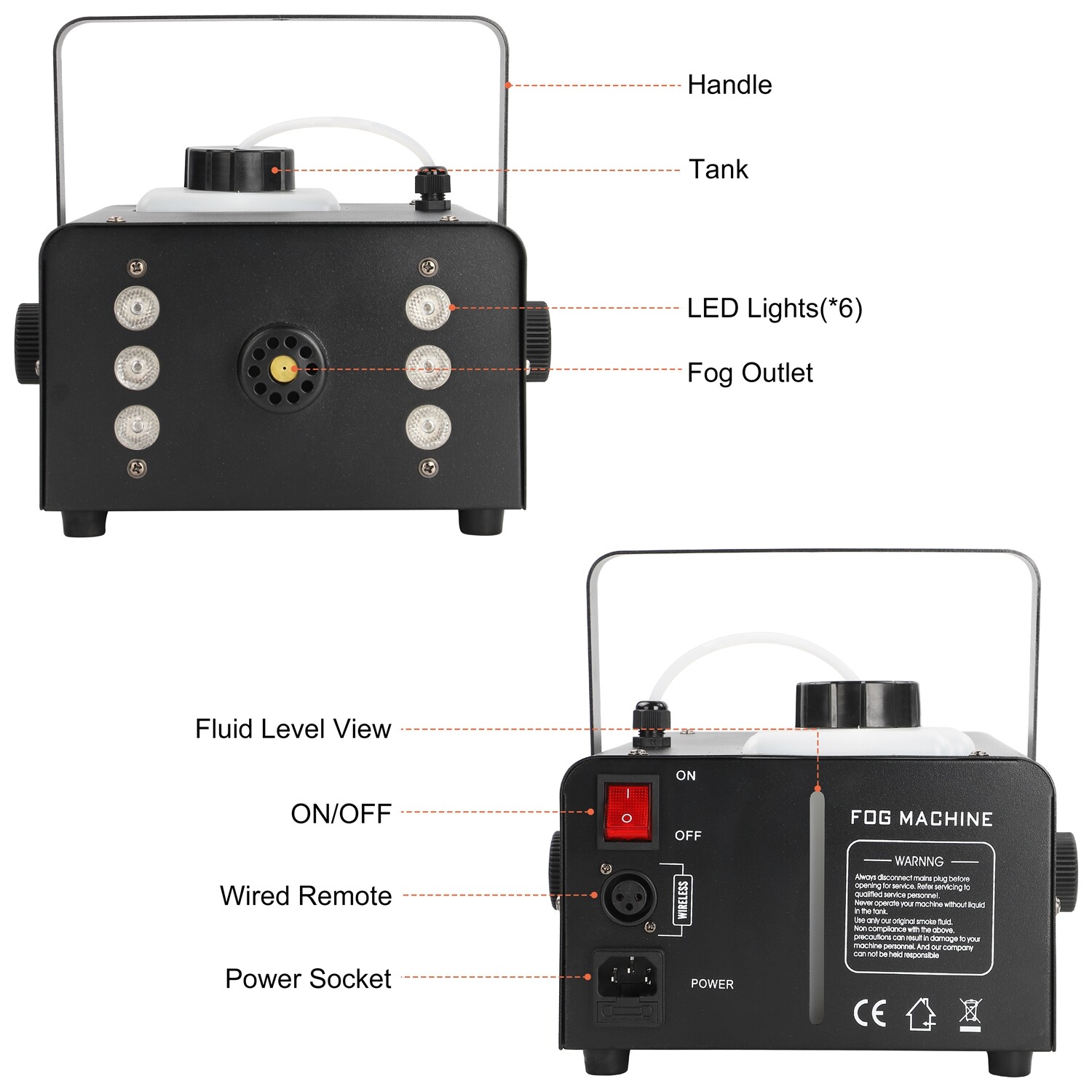 1500W Fog Smoke Machine RGB 6LED Stage DJ Fogger Smoke Effect Multi Color Remote