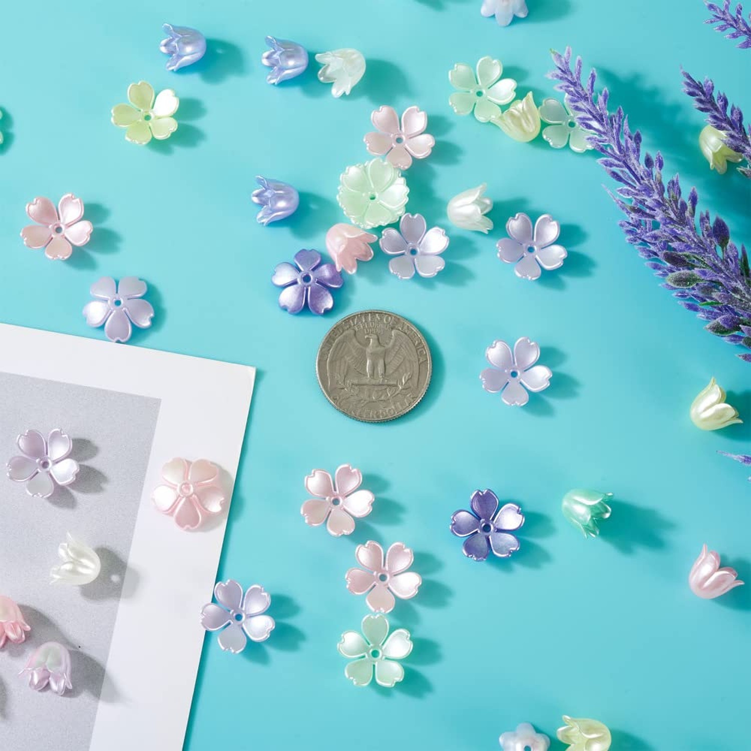 Pandahall 550Pcs Acrylic Flower Bead Caps Mixed Tulip Flowers 5-Petal Floral ...