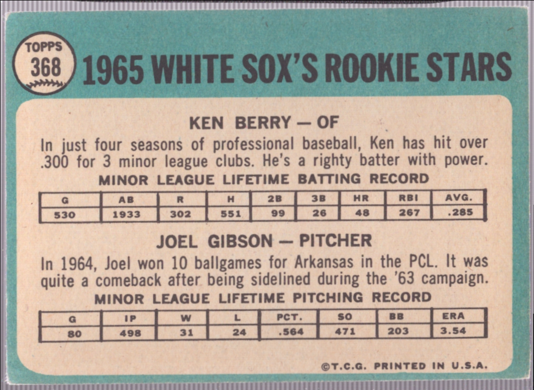 Player: White Sox 1965 Rookie Stars (Ken Berry / Joel Gibson) RS, RC