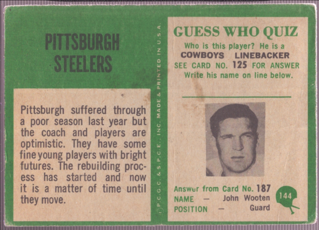 1966 Philadelphia Football Pittsburgh Steelers TC 144 PR