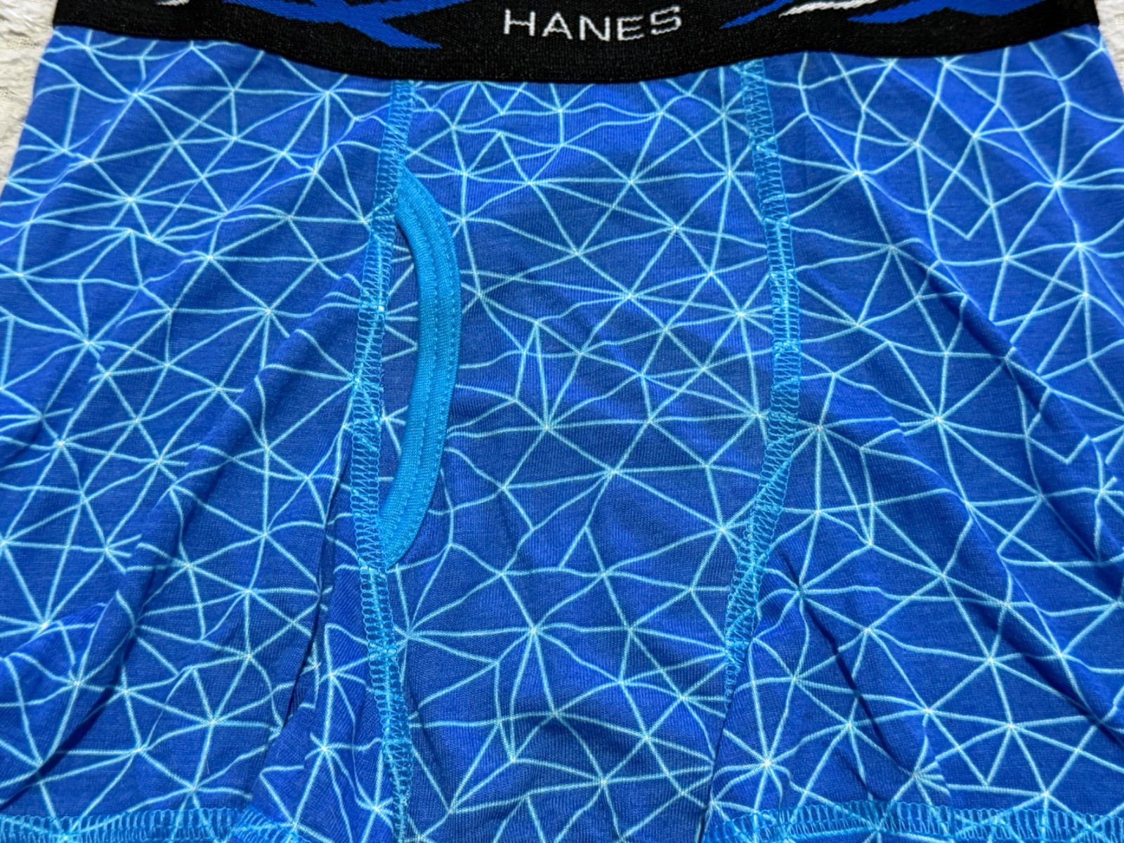 как выглядит Boys Medium Blue Geometric Pattern Hanes X-Temp Performance Boxer Briefs фото