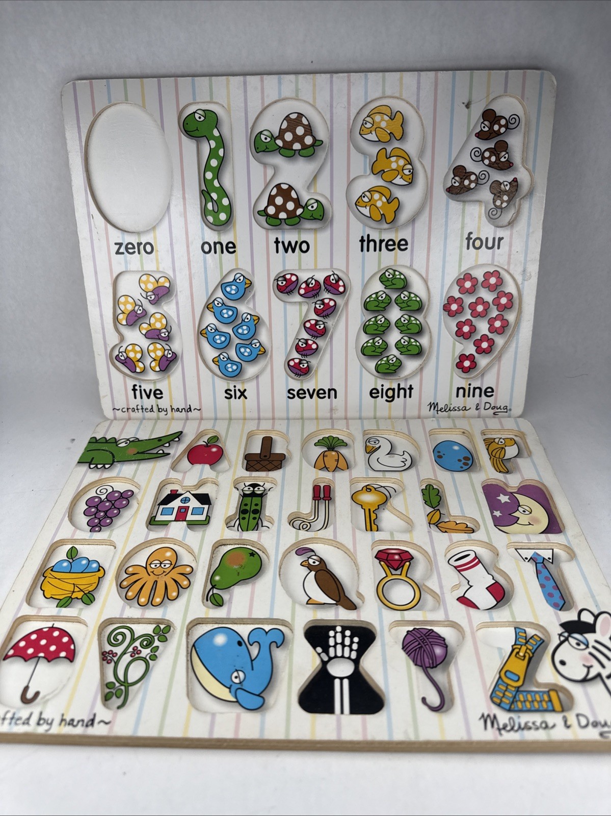 как выглядит Melissa Doug See-Inside Alphabet Numbers Wooden Peg Puzzle фото