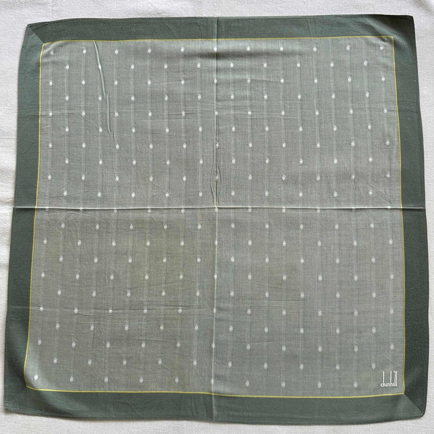VTG dunhill Handkerchief Green Fabric Woven Geometric Pattern Pocket Square 19