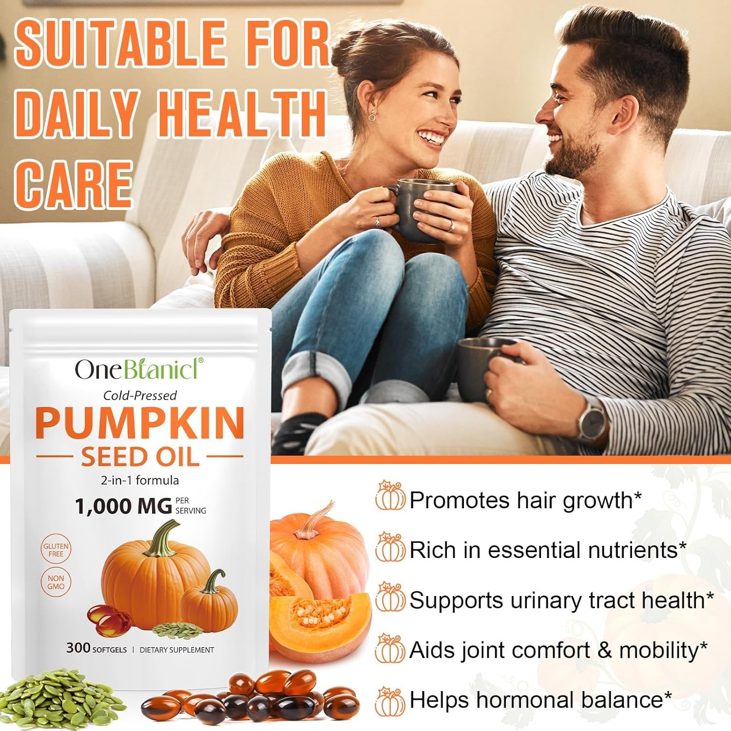 Pumpkin Seed Oil Capsules 1000mg, 2-in-1 Pumpkin Seed Oil w/ Saw Palmetto, 300ct