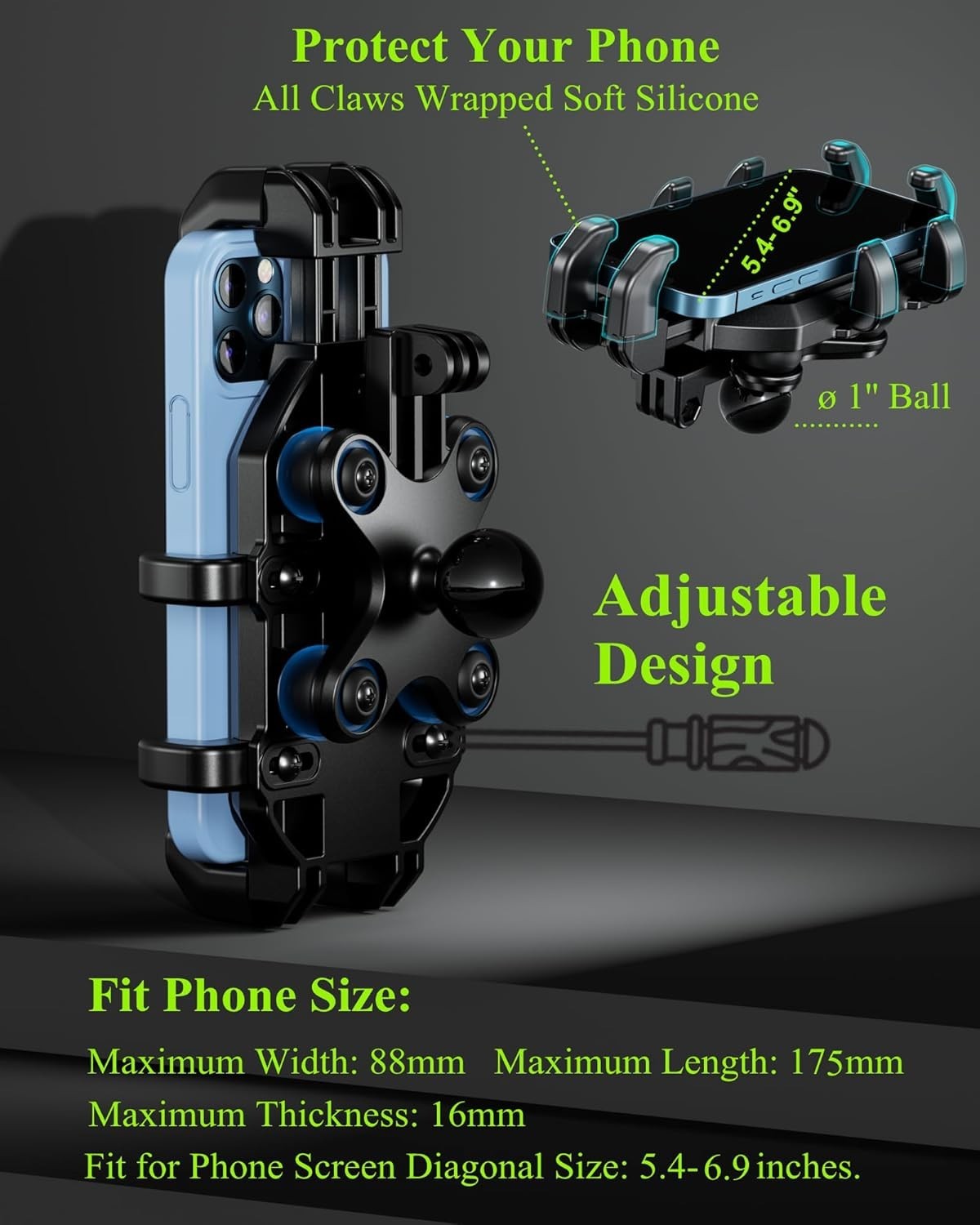 Motorcycle Phone Holder with Vibration Dampener, Anti-Shake Black