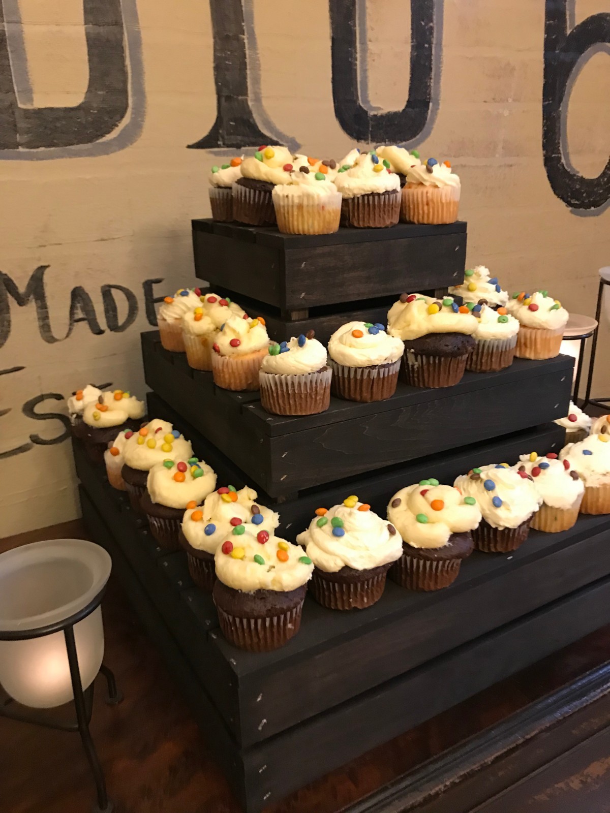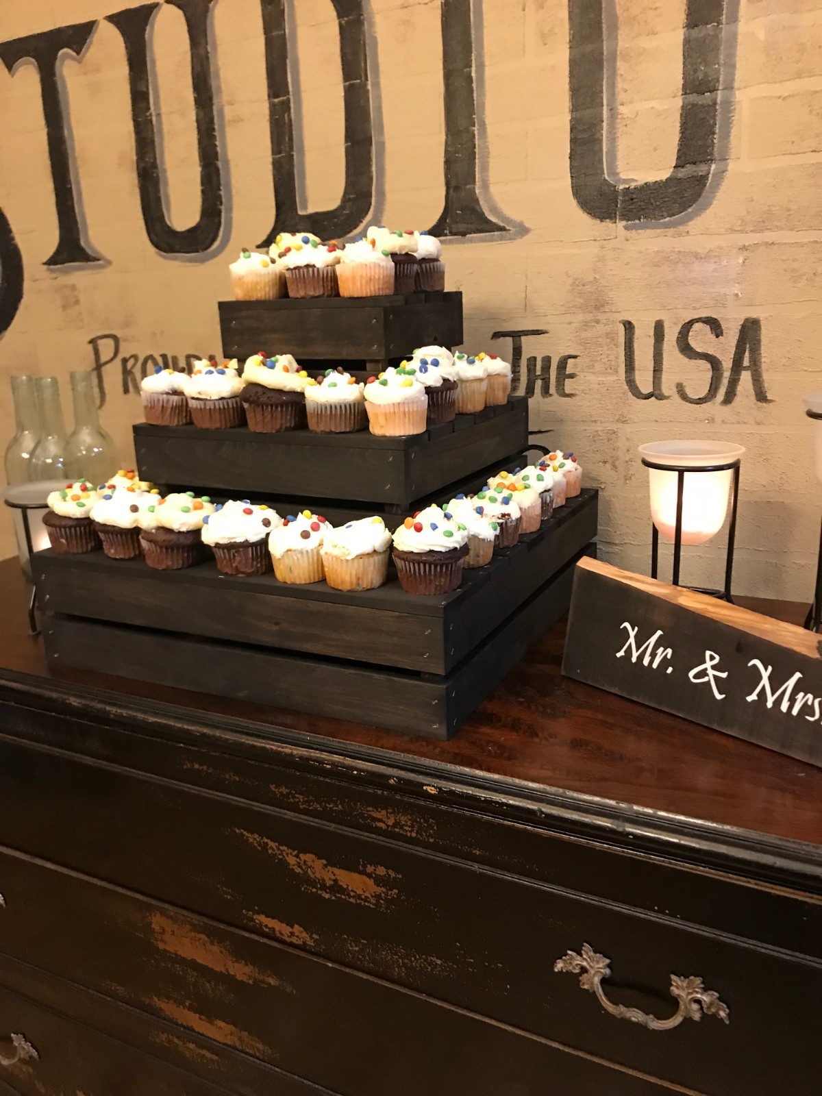 Rustic Dark Wooden Cupcake Stand 3 Tier Dessert Display for Weddings Parties