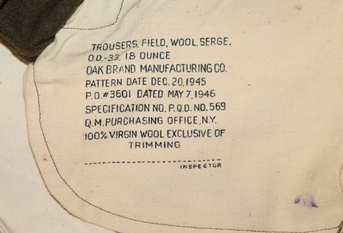 • ORIGINAL POST WWII 1946 DATED WOOL FIELD TROUSERS WITH BUTTON FLY
