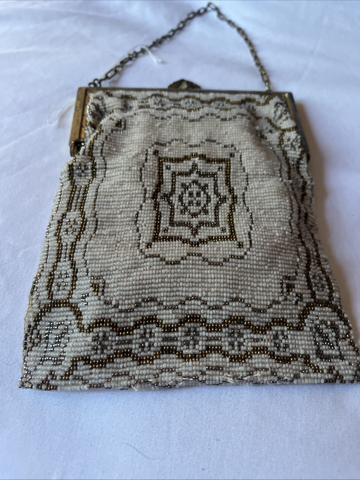 ANTIQUE FRENCH MICRO BEADED PURSE 1915 France