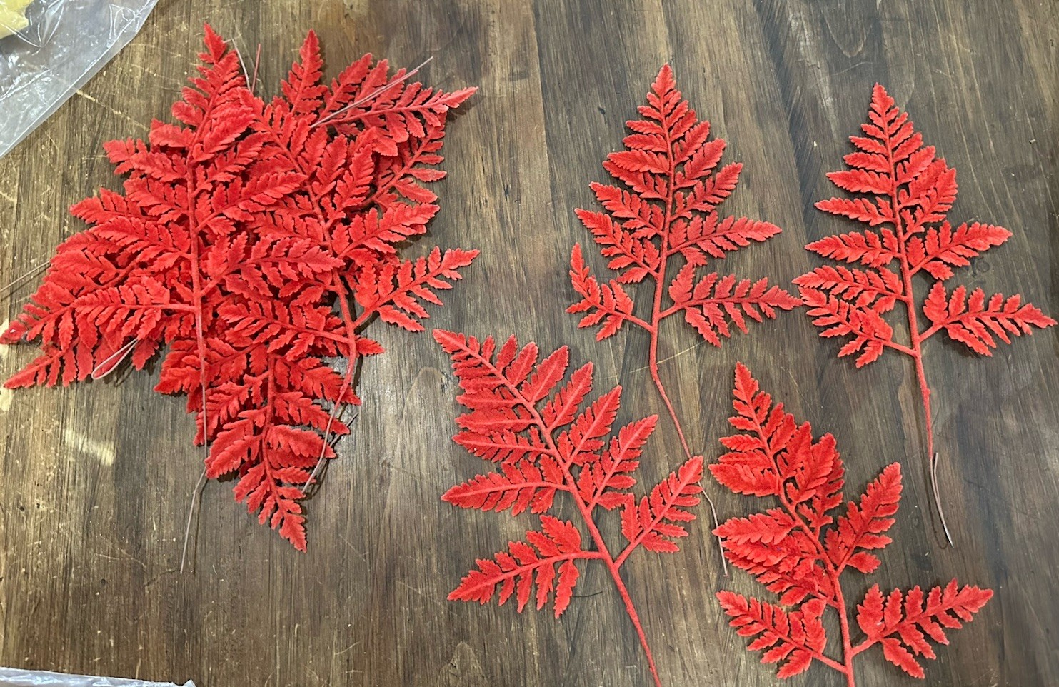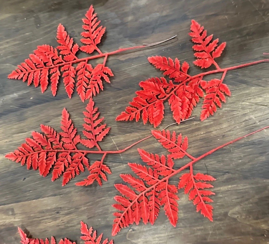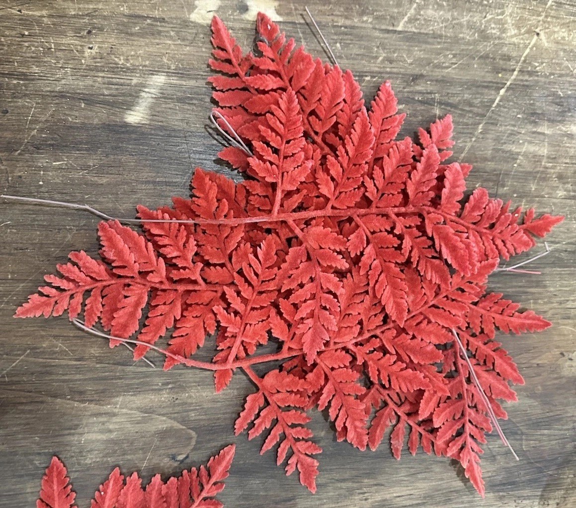 как выглядит Vintage Millinery Velvet Fall Leaves Orange Red Fern Look Wired Autumn Decor фото