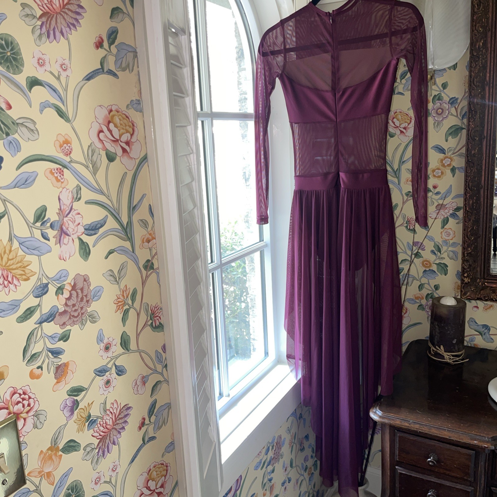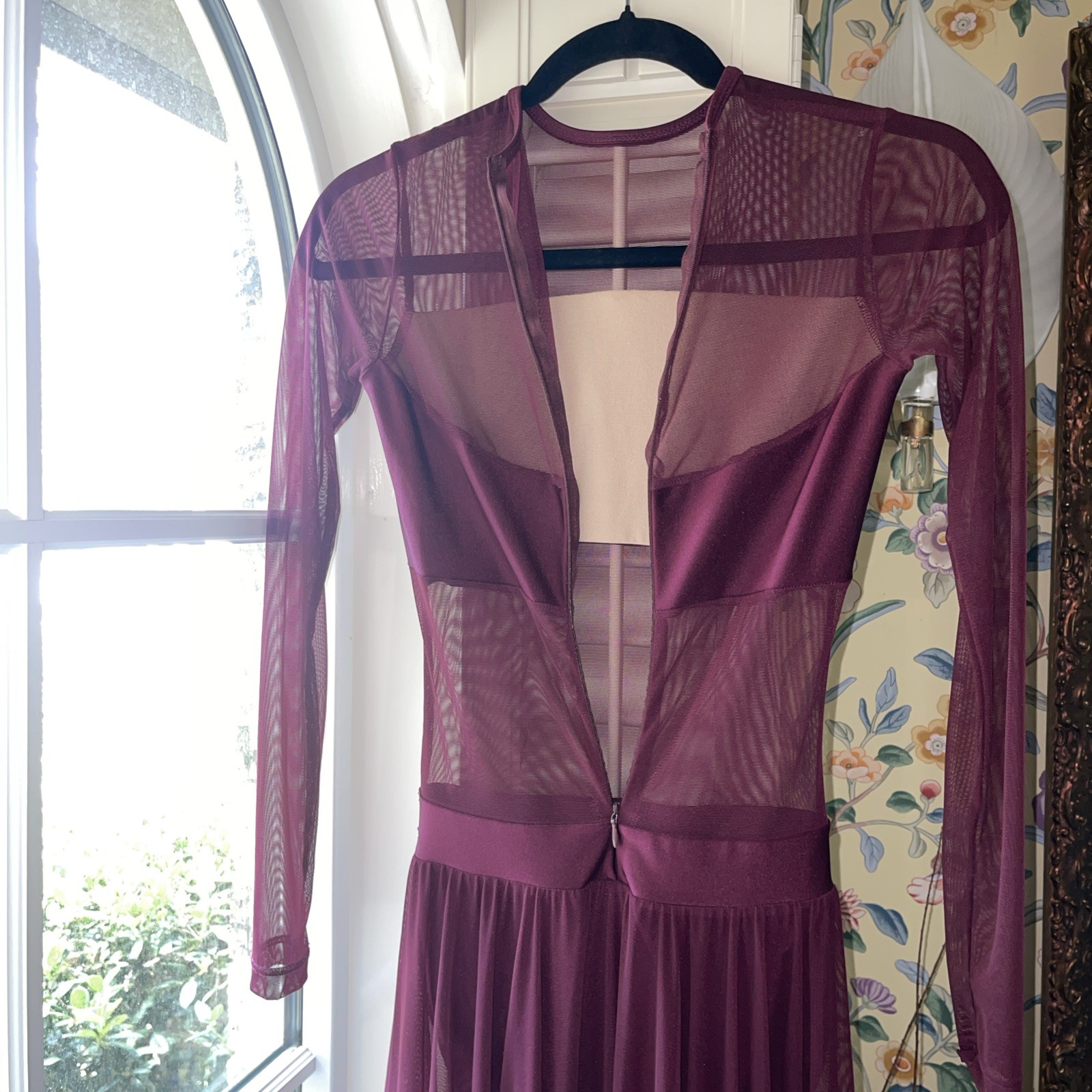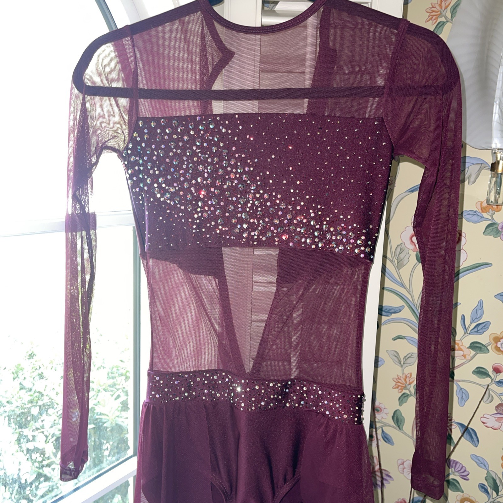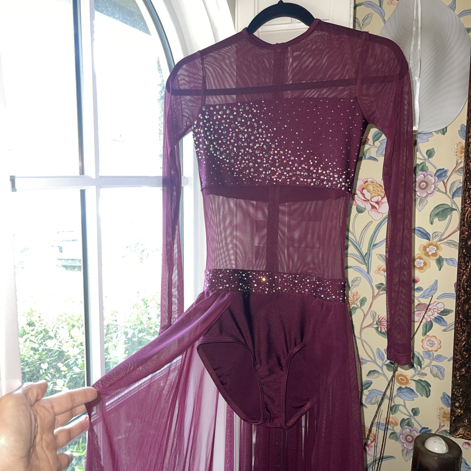 как выглядит Lyrical Dance Rhinestone Dress Long Sleeve One Piece Leotard Pettie/XS, Burgundy фото