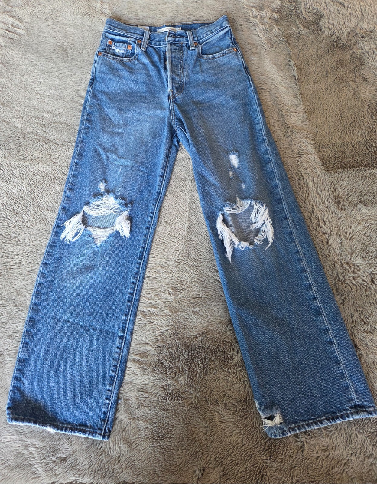 как выглядит Levis Ribcage Straight Ankle Jeans - Womens Size 25 Light Wash - Pre-Owned фото
