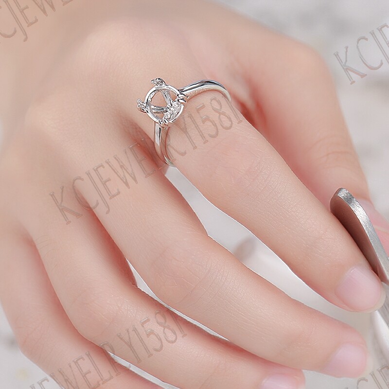 10x8mm Oval Semi Mount Prong Setting Sterling Silver Engagement Ring Anniversary
