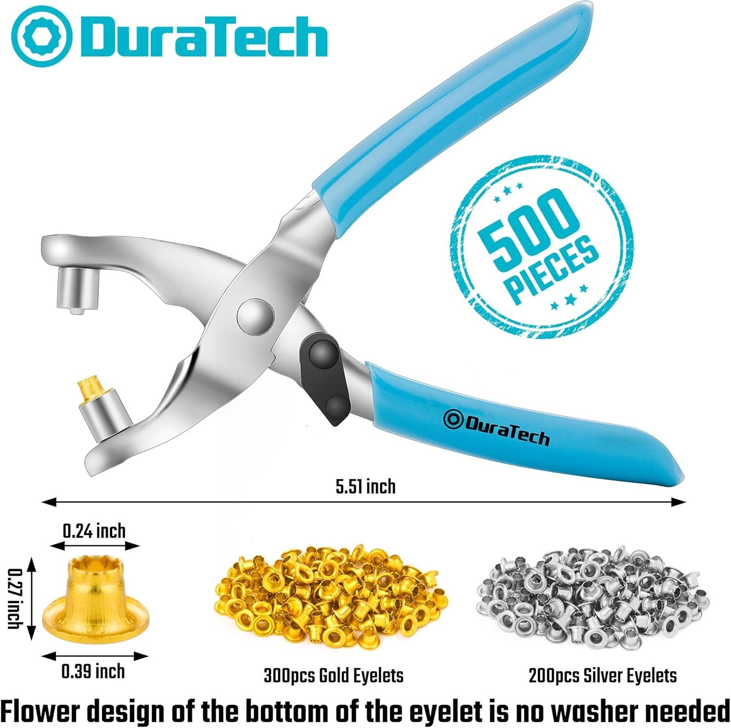 Grommet Eyelet Pliers kit, Eyelet Pliers with 500 Gold and Silver Metal Eyele...