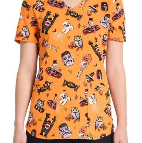 Scrubstar Women's size L Scary Sweets V- Neck Halloween Theme Scrub Top NWT