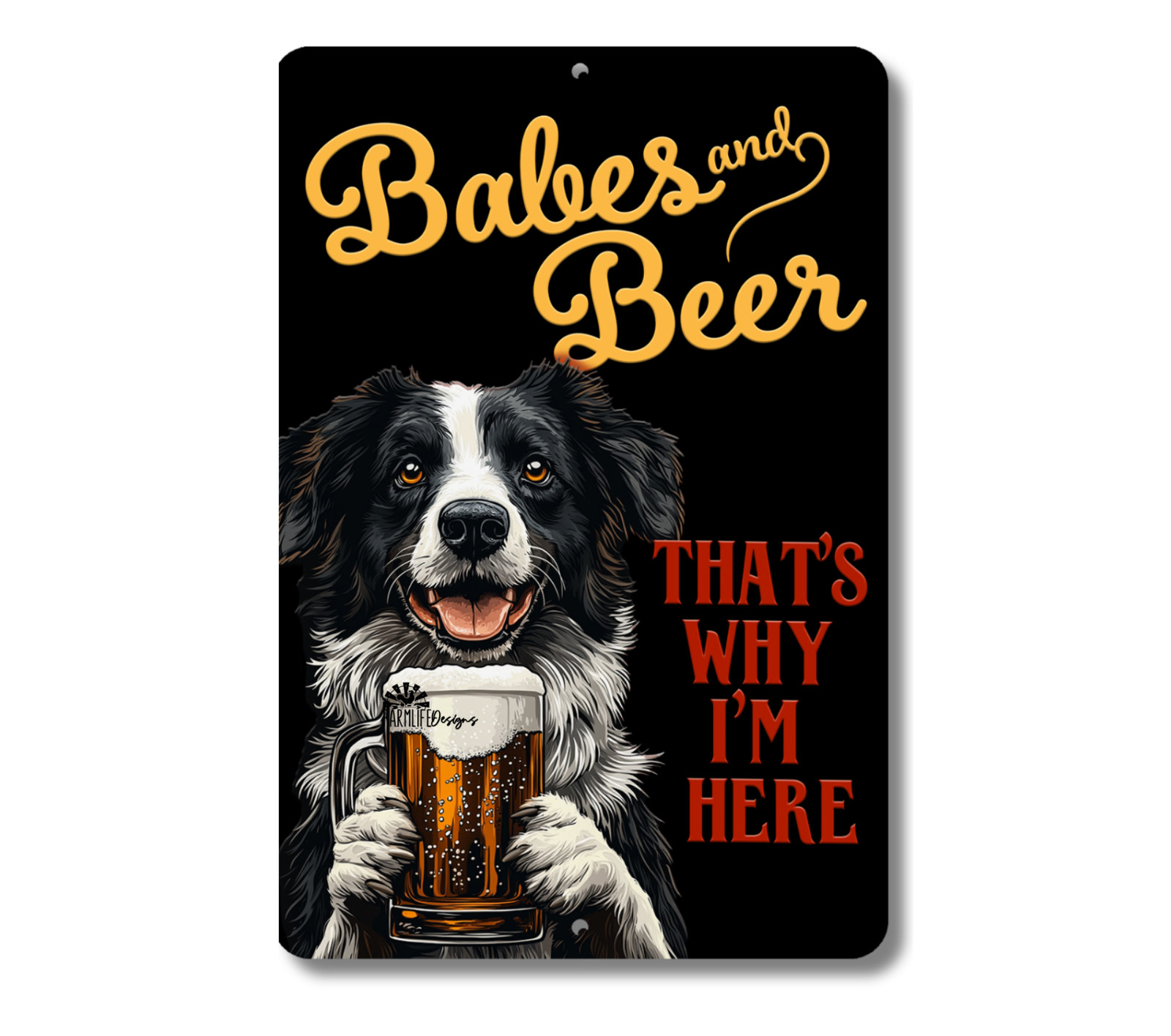Border Collie Man Cave Sign Babes Beer funny dog metal tin home bar wall art