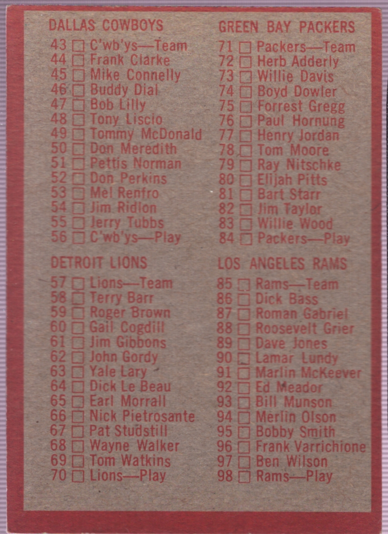• 1965 Philadelphia Football Checklist 1 CL 197 EX
