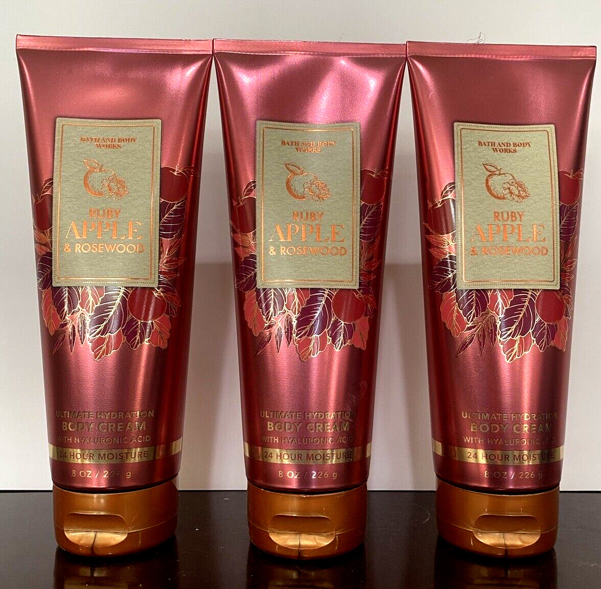 Bath Body Works Lot of 3 RUBY APPLE ROSEWOOD Ultimate Hydration Body Creams
