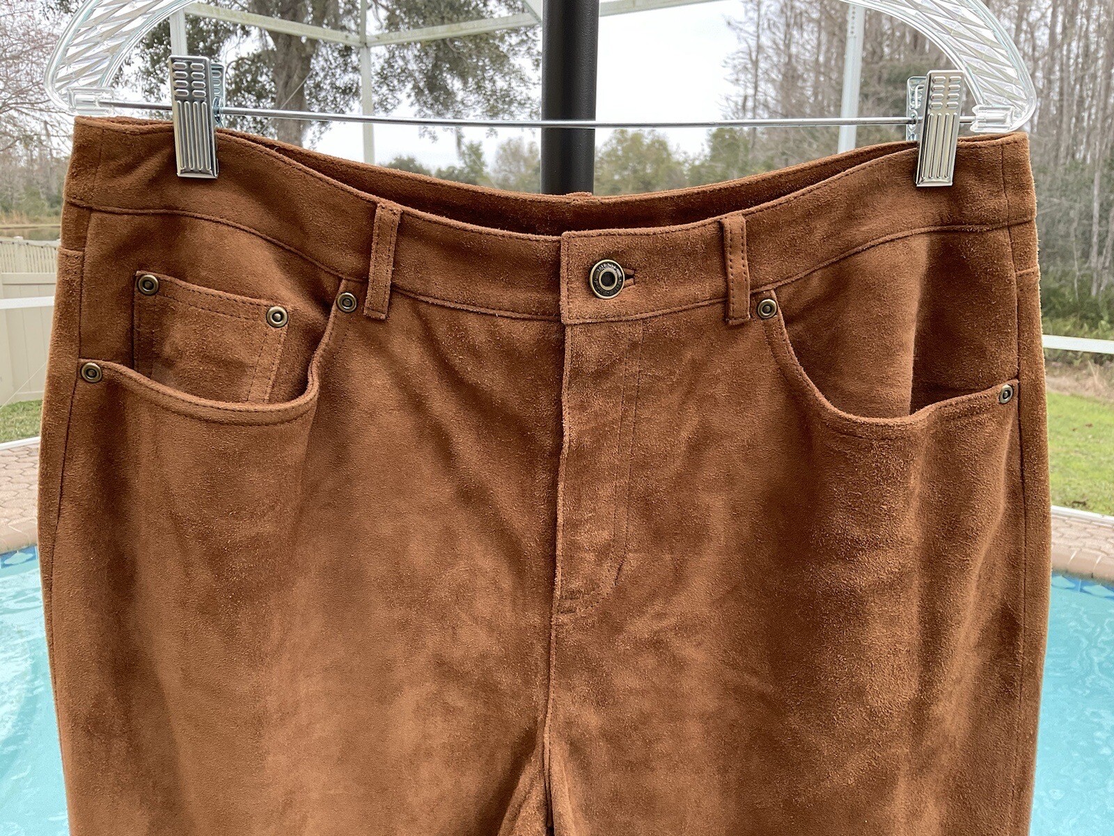 как выглядит Talbots Real Suede Pants 12 Womens Classic 5 Pocket Jeans Lined NWT MSRP 198. фото