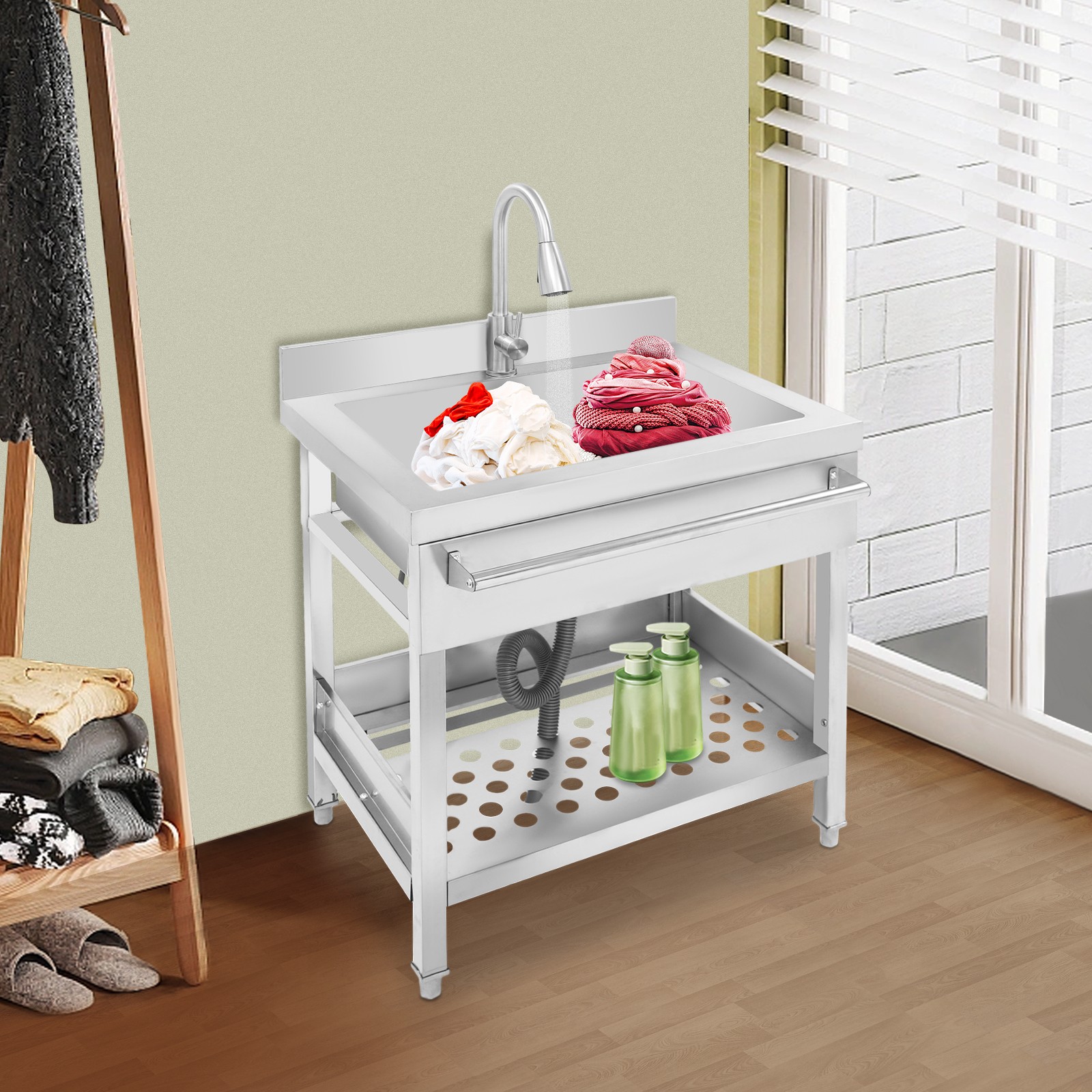 Single Bowl Sink with Pull-Out Faucet Freestanding Commercial Restaurant Kitchen
