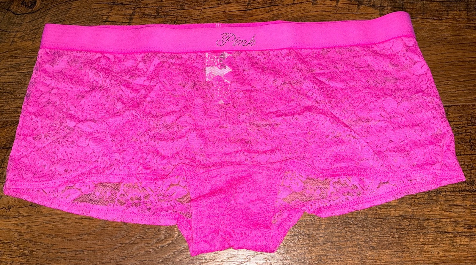 как выглядит Victorias Secret Pink Bling Floral Lace Boyshort Panties Pink Gossip Logo L XL фото