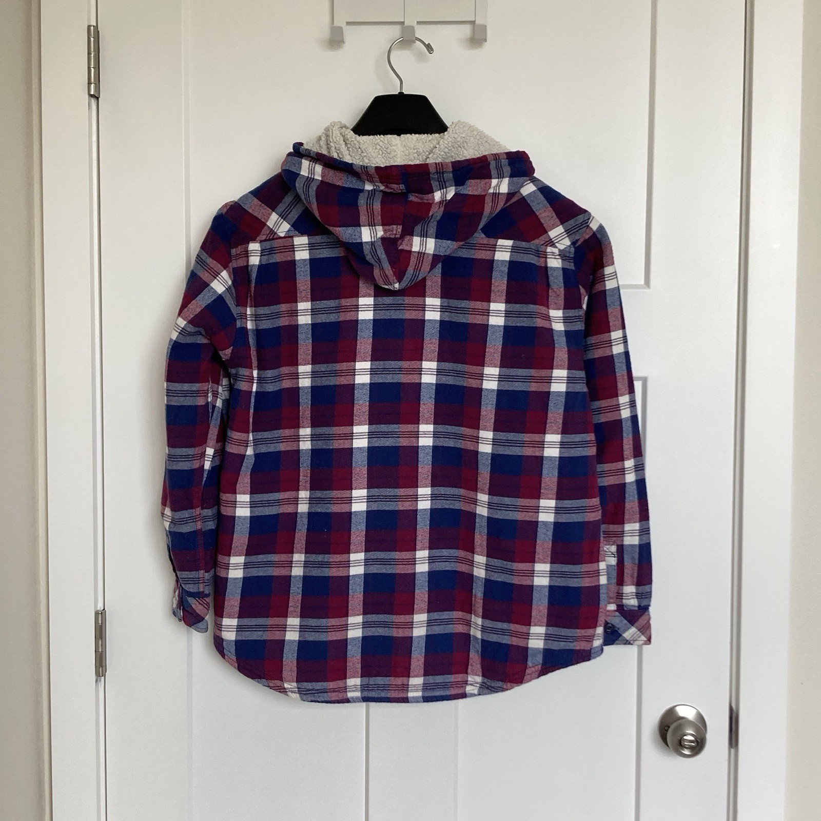 Boston Traders Women's Buffalo Check Sherpa Lined Hooded Flannel Jacket Shacket