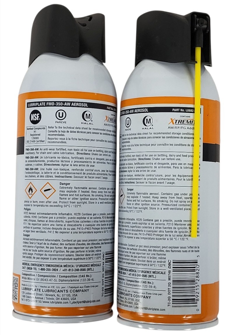 2 PACK of 12oz Cans Lubriplate FMO 350AW Food Machinery Lubricant Spray