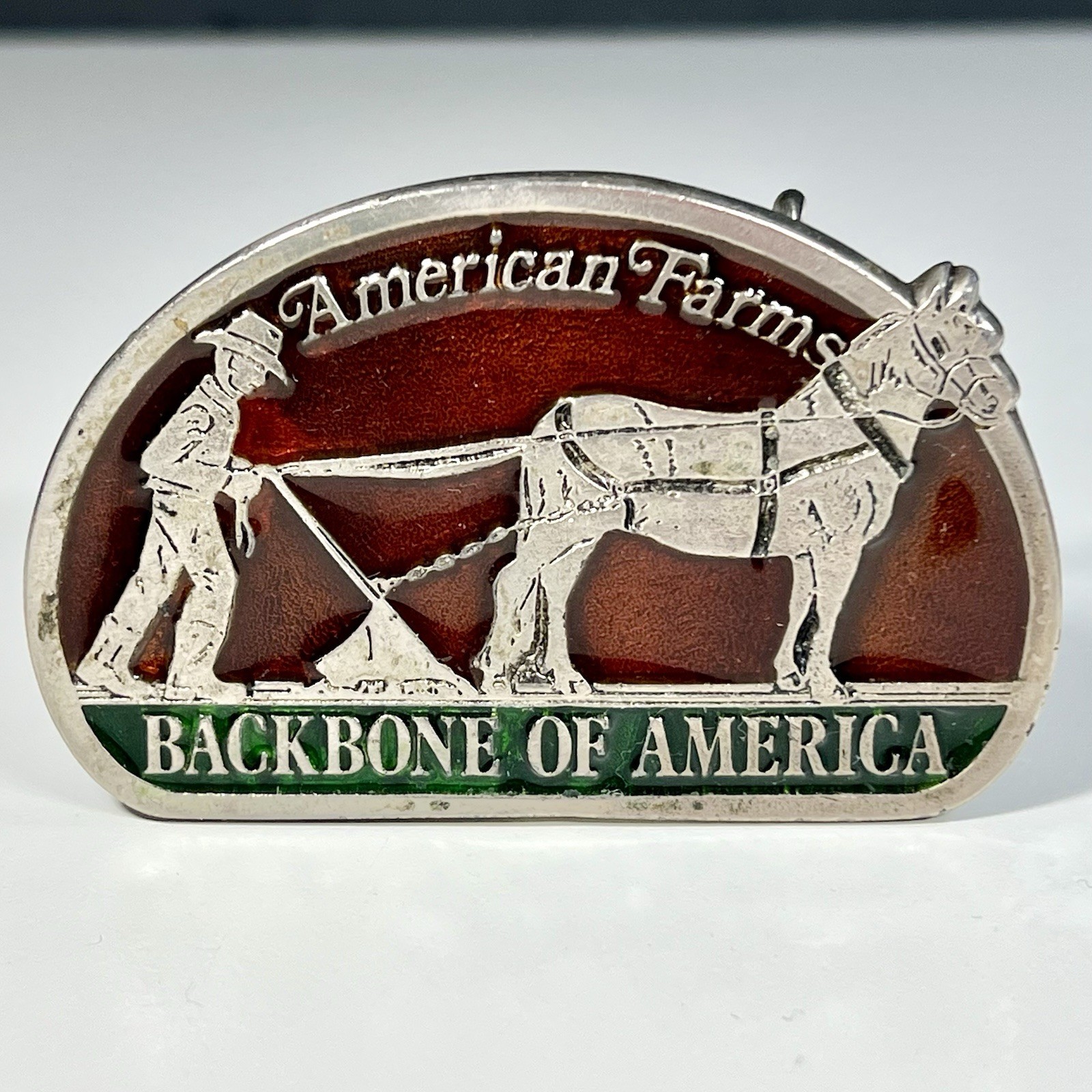 American Farms Belt Buckle Pewter Enameled The Backbone Of America Farmer 3 1/4