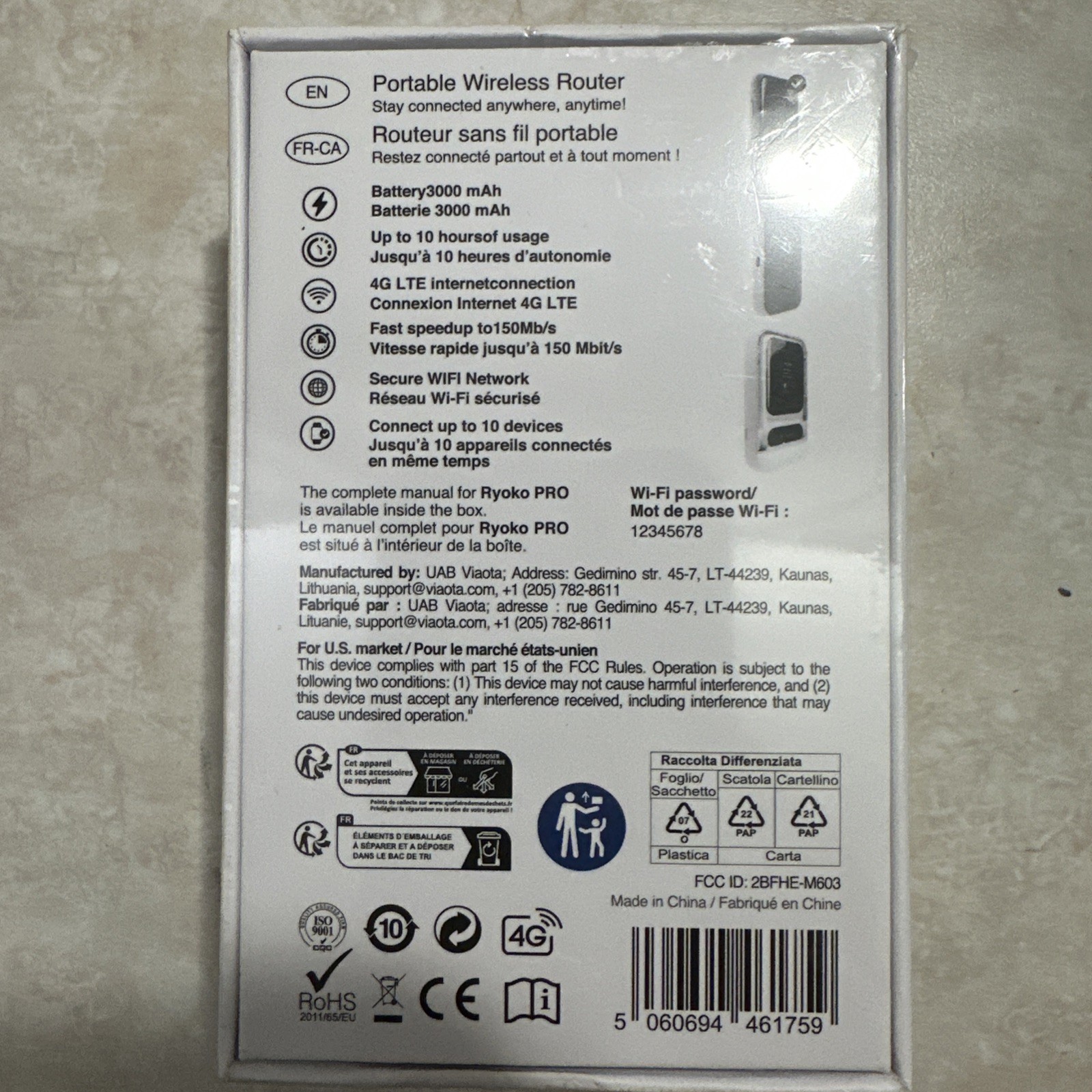 Ryoko Pro High-Speed Portable 4G LTE Wi-Fi Router New