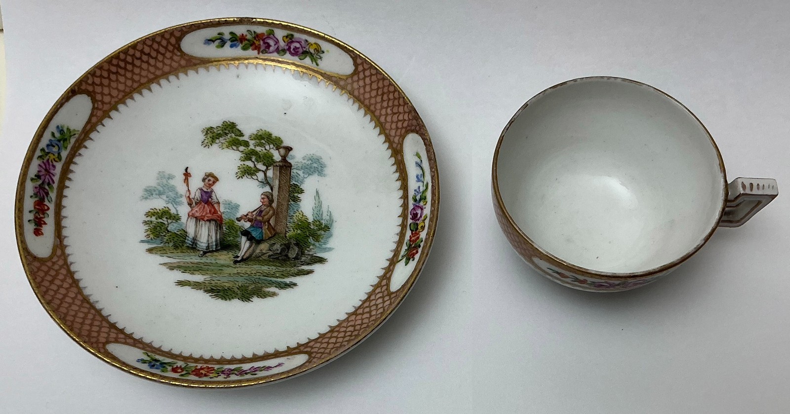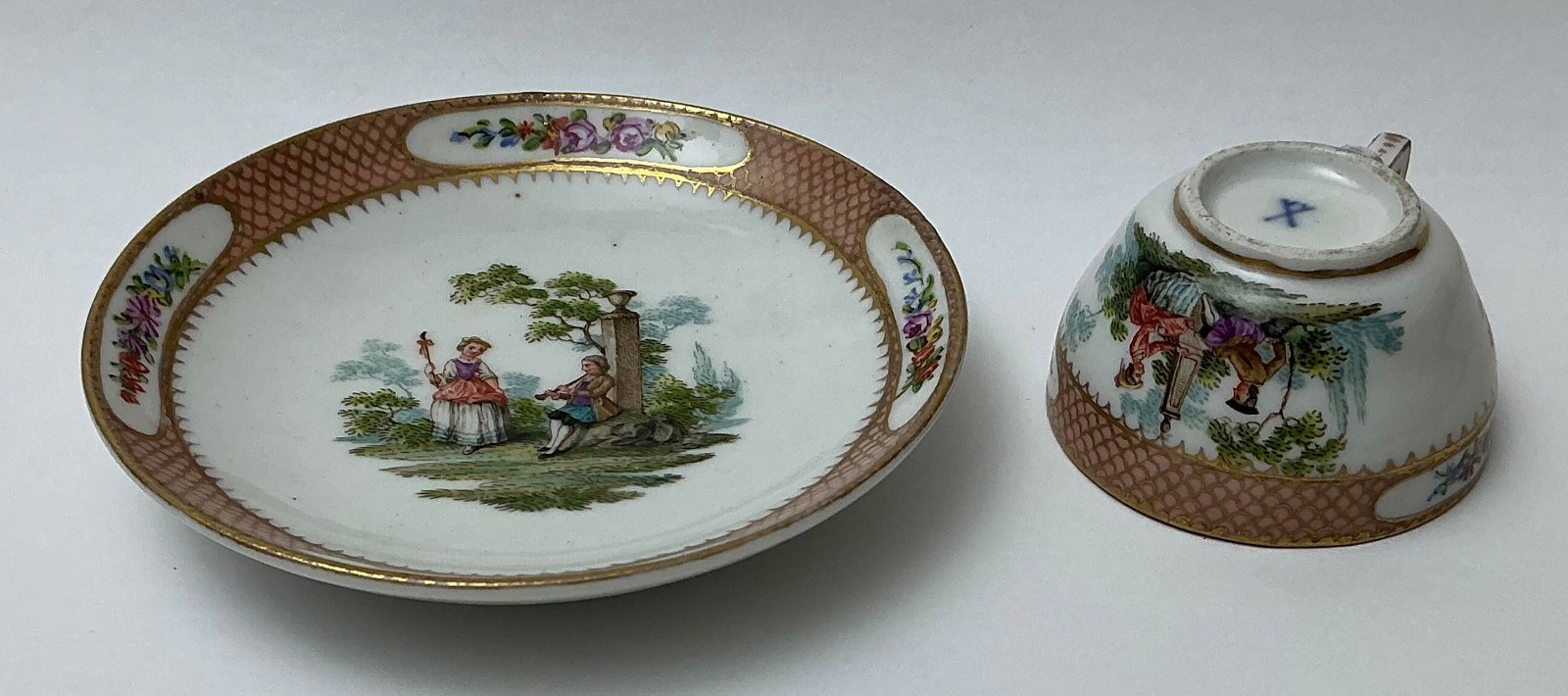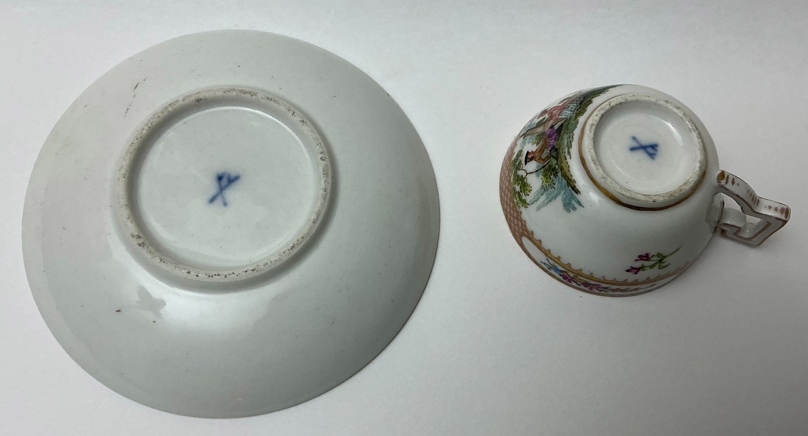 как выглядит Antique Meissen Coffee cup saucer Hand painted. 18th c. AH1250 фото