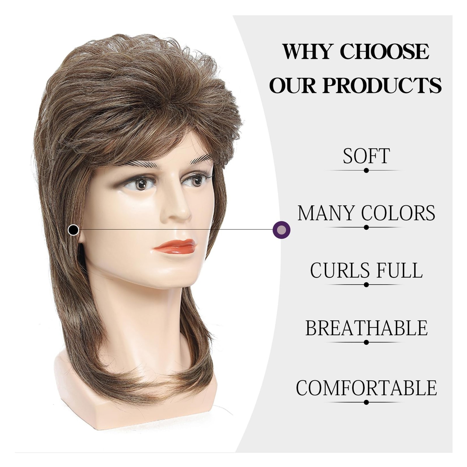 Mullet Wig for Men Joe Dirt Emo Wig 80s 90s Costumes Fancy Party Accessory Co...