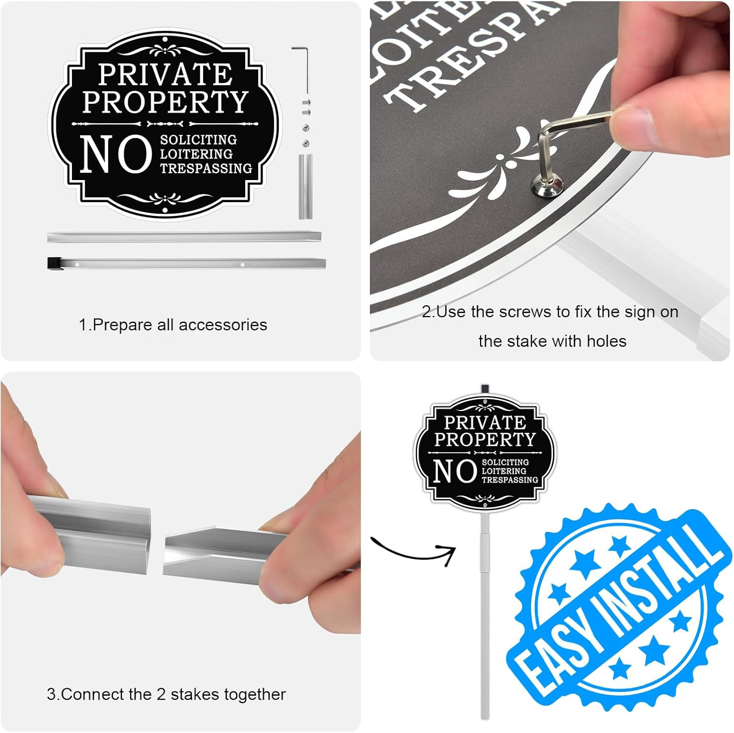 как выглядит No Soliciting Sign for House with Metal Stake, 12" X 28" Private Property No Tre фото