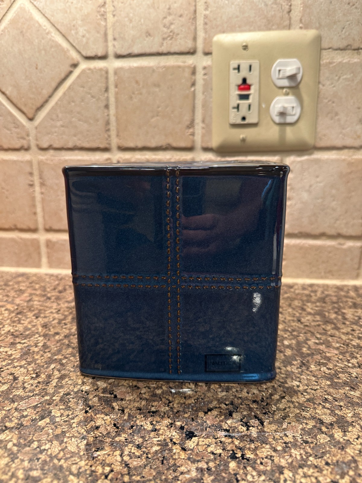 Nautica DENIM Tissue 5.5 Cube BLUE Ceramic Tissue Box Cover thread pattern NEW