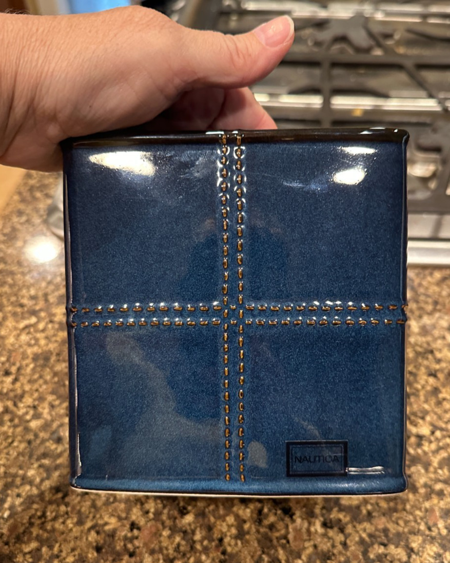 как выглядит Nautica DENIM Tissue 5.5" Cube BLUE Ceramic Tissue Box Cover thread pattern NEW фото