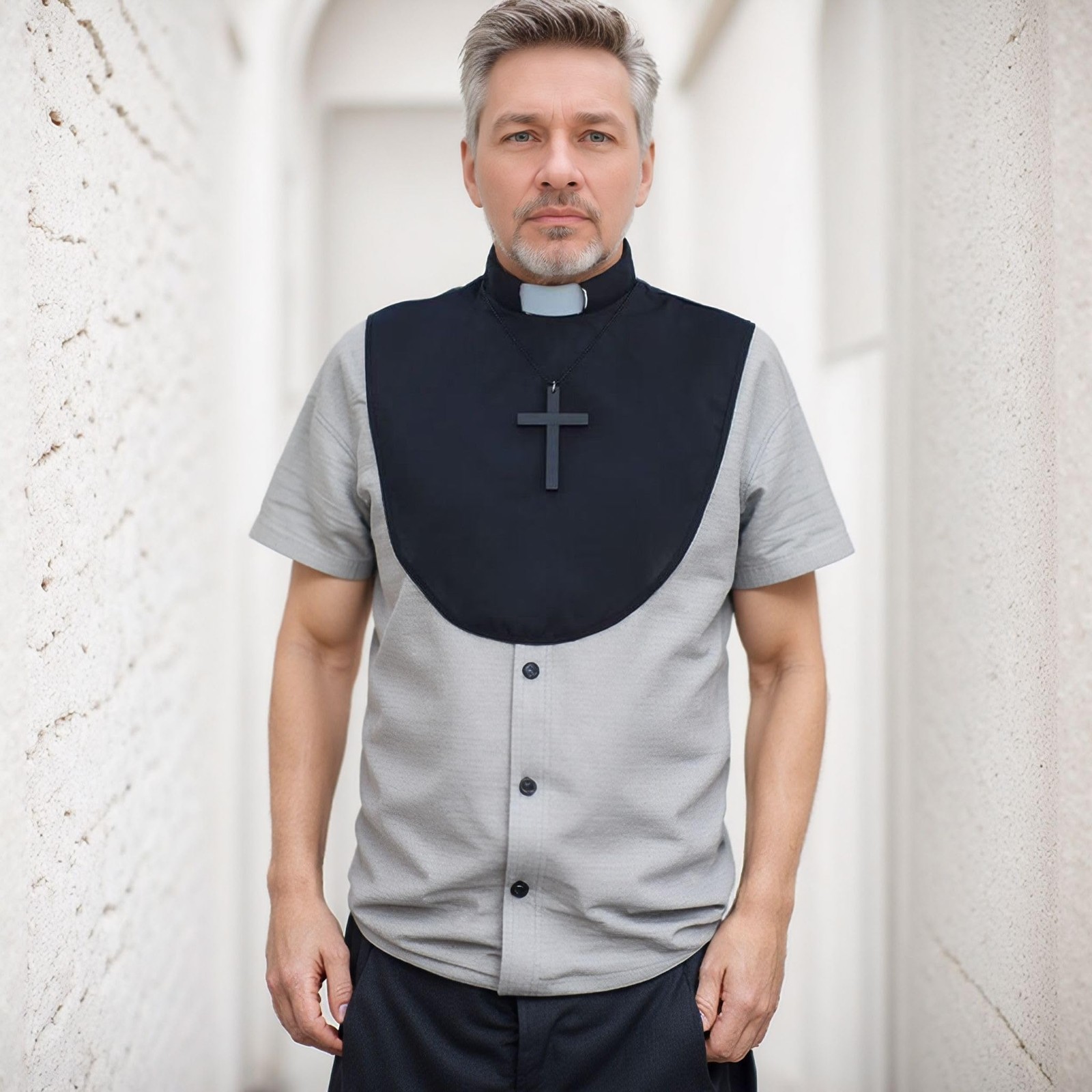 как выглядит 2pcs Clergy Priest Collar with White Tab Unisex Clerical Bib Black Pastor Dic... фото