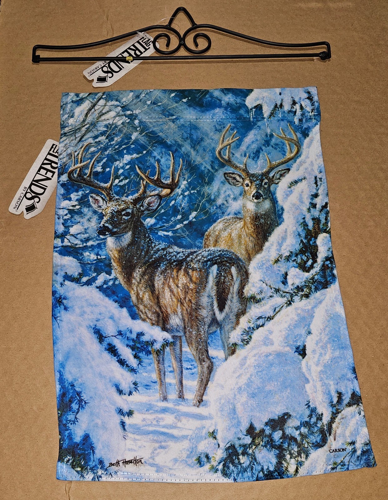Winter Deer Garden Flag with Flag-Wall Hanger