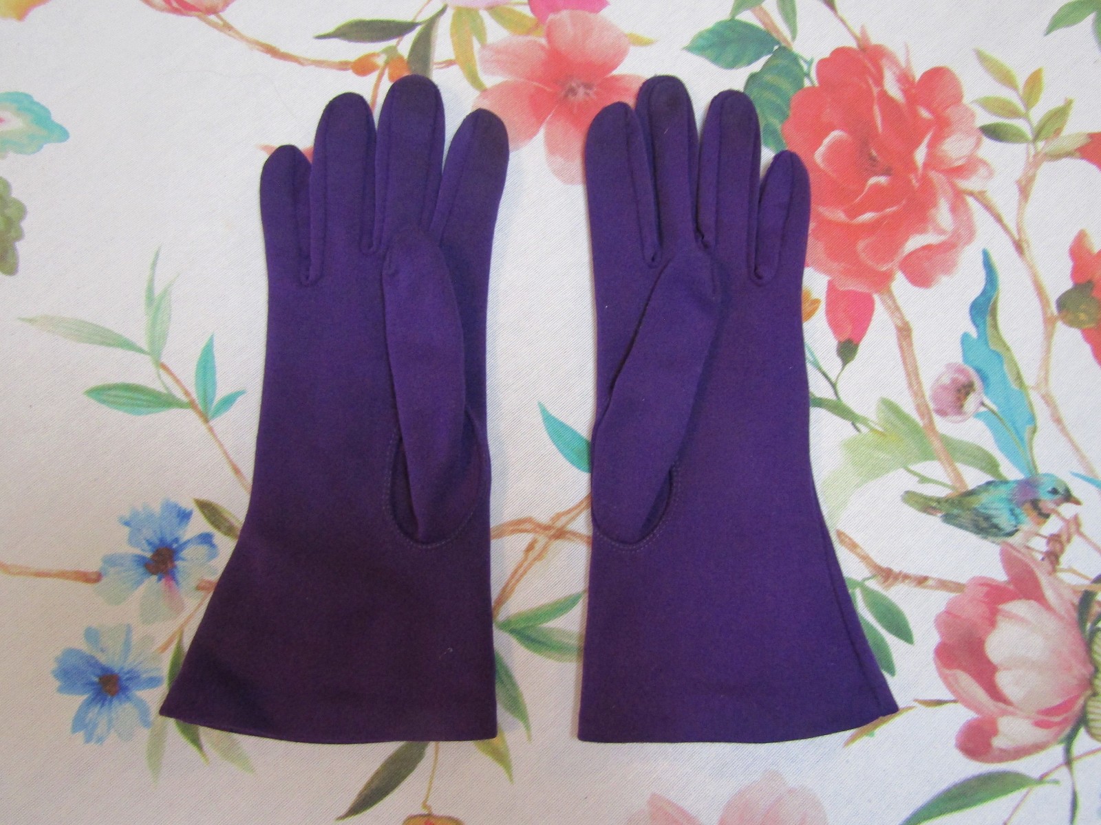 как выглядит Vintage Royal Purple Nylon Evening Gloves---10" Bracelet Length---Size 6 1/2 фото