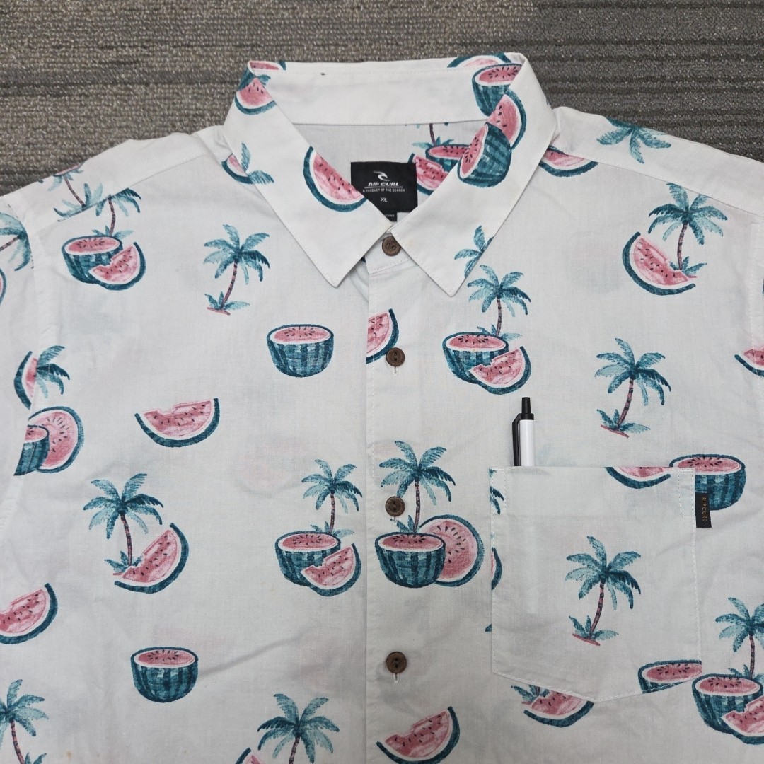 Rip Curl Shirt Size XL White Watermelon Palm Tree AOP Short Sleeve Button Up New