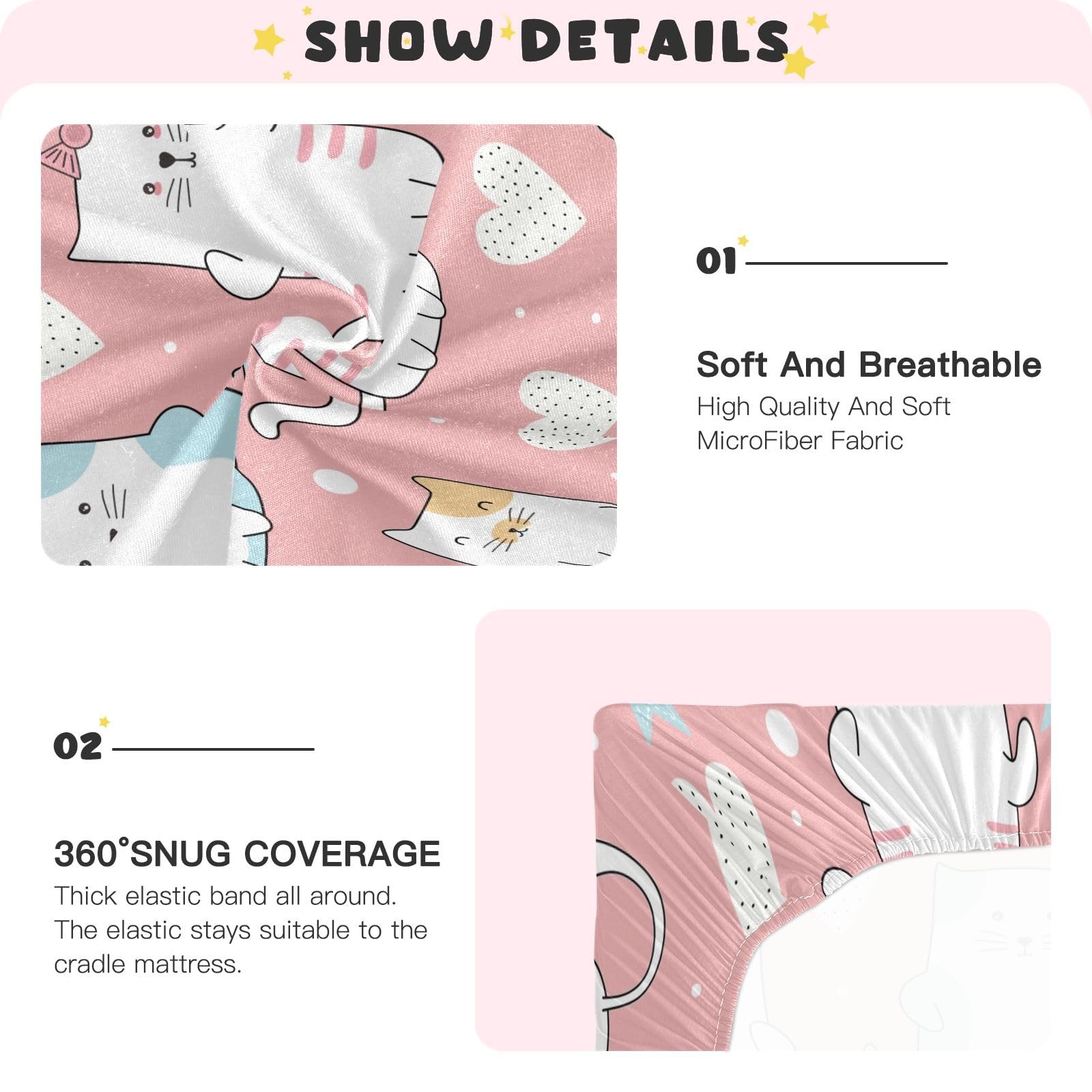 Cute Cat Crib Sheets Stretchy Portable Sheets for Baby Toddler Breathable Sof...