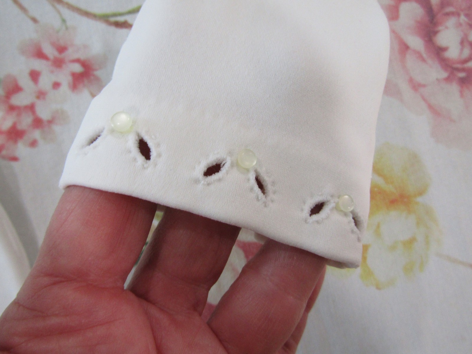 как выглядит Vintage White Cotton 8" Wrist /" Shorties" Gloves--Cutouts Buttons-Size 6 1/2 фото