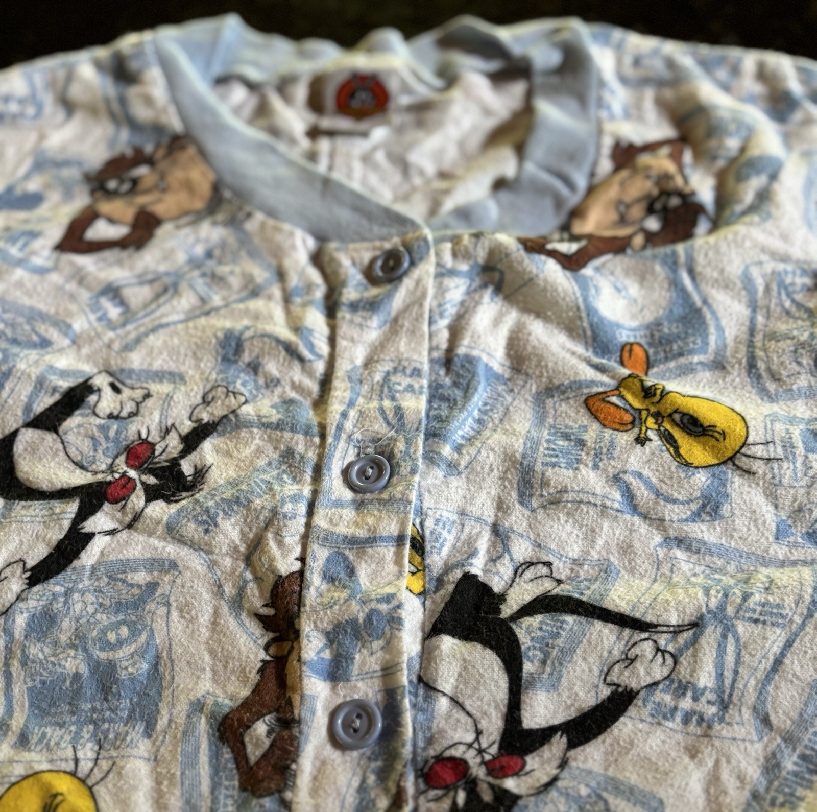 VTG 1998 Looney Tunes 1 Piece Cotton Flannel Adult PJs Taz Tweety Sylvester Med