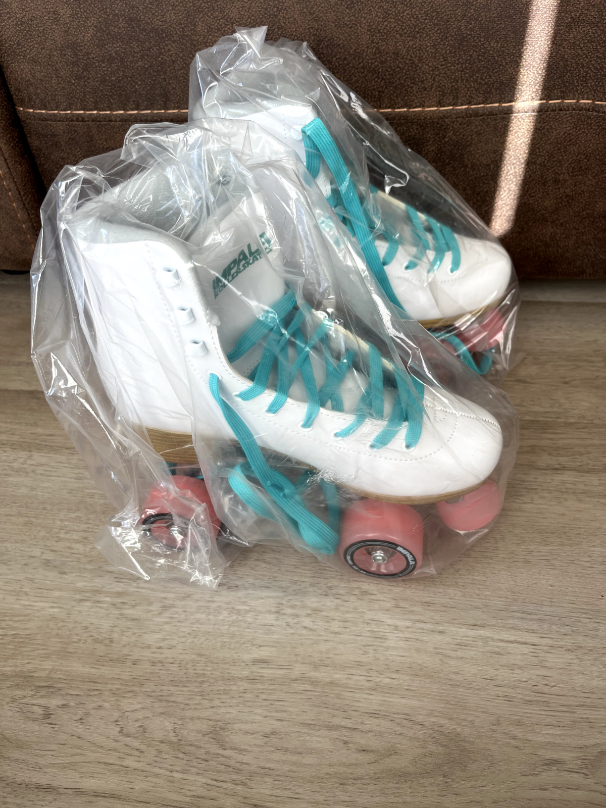 как выглядит Impala Quad Skate Women s Size 8 White Roller skates Teal Laces фото