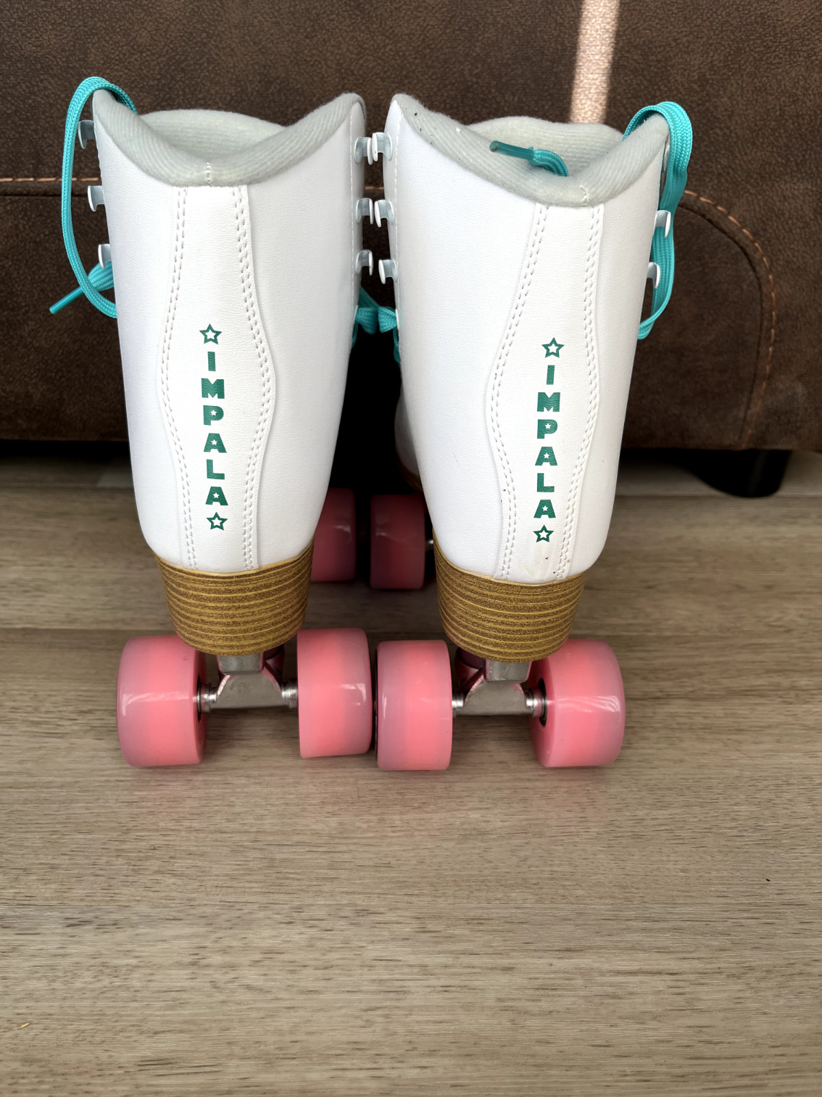 Impala Quad Skate Women s Size 8 White Roller skates Teal Laces