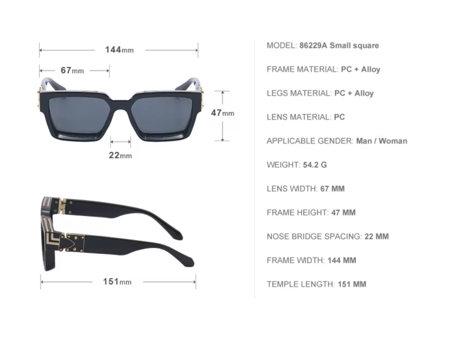 Fashion Sunglasses Rectangular Luxury Shades Street Wear Fancy Gold Bar Hip Hop