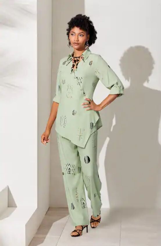 как выглядит 2X PLUS Ashro Mint Green Ethnic African Pride Danissa Pant Skirt Suit Wardrober фото