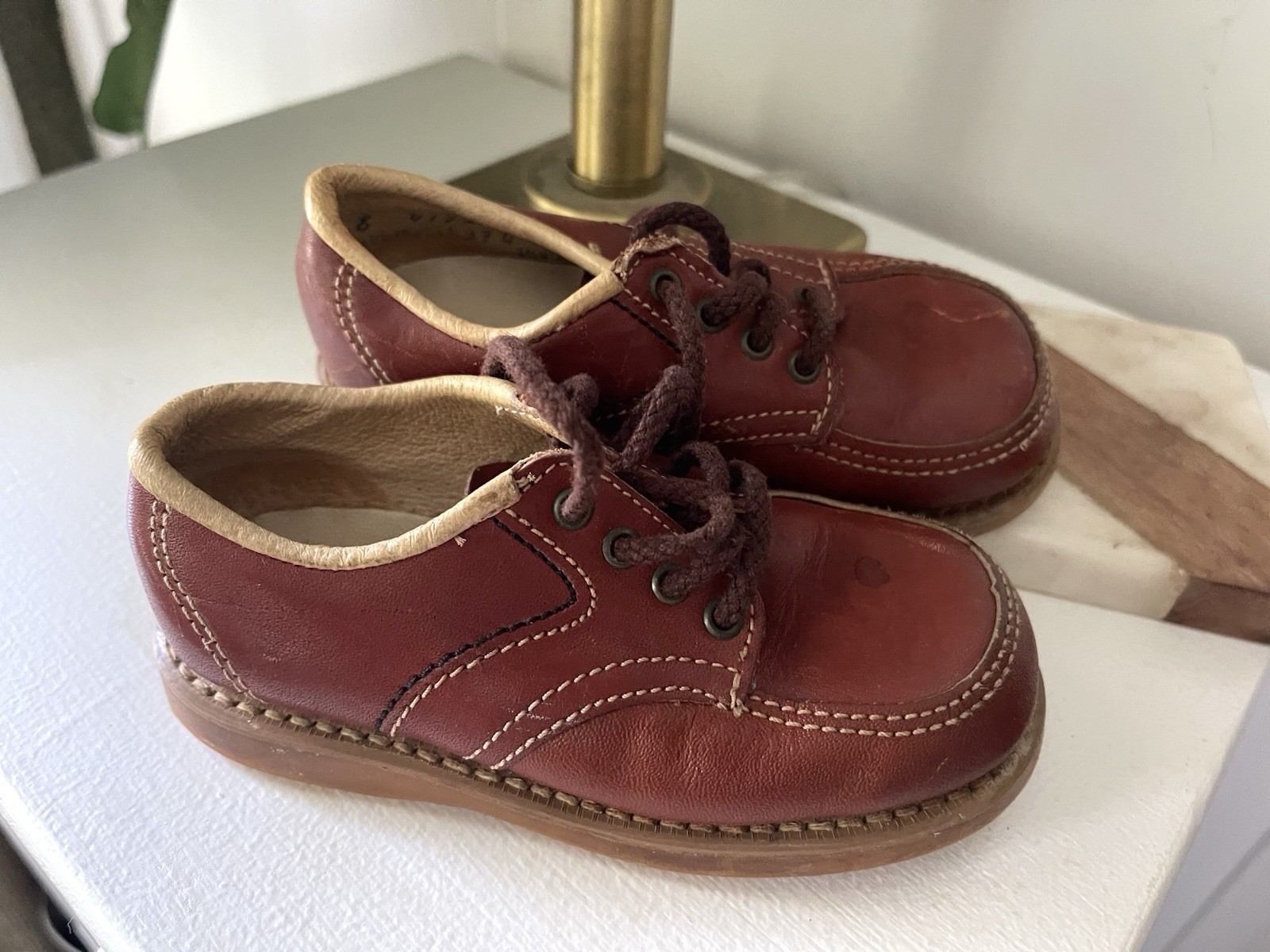 Vintage Stride Rite Baby Toddler Shoes 6 6E Leather Dura-5 Brown red-brown Lace