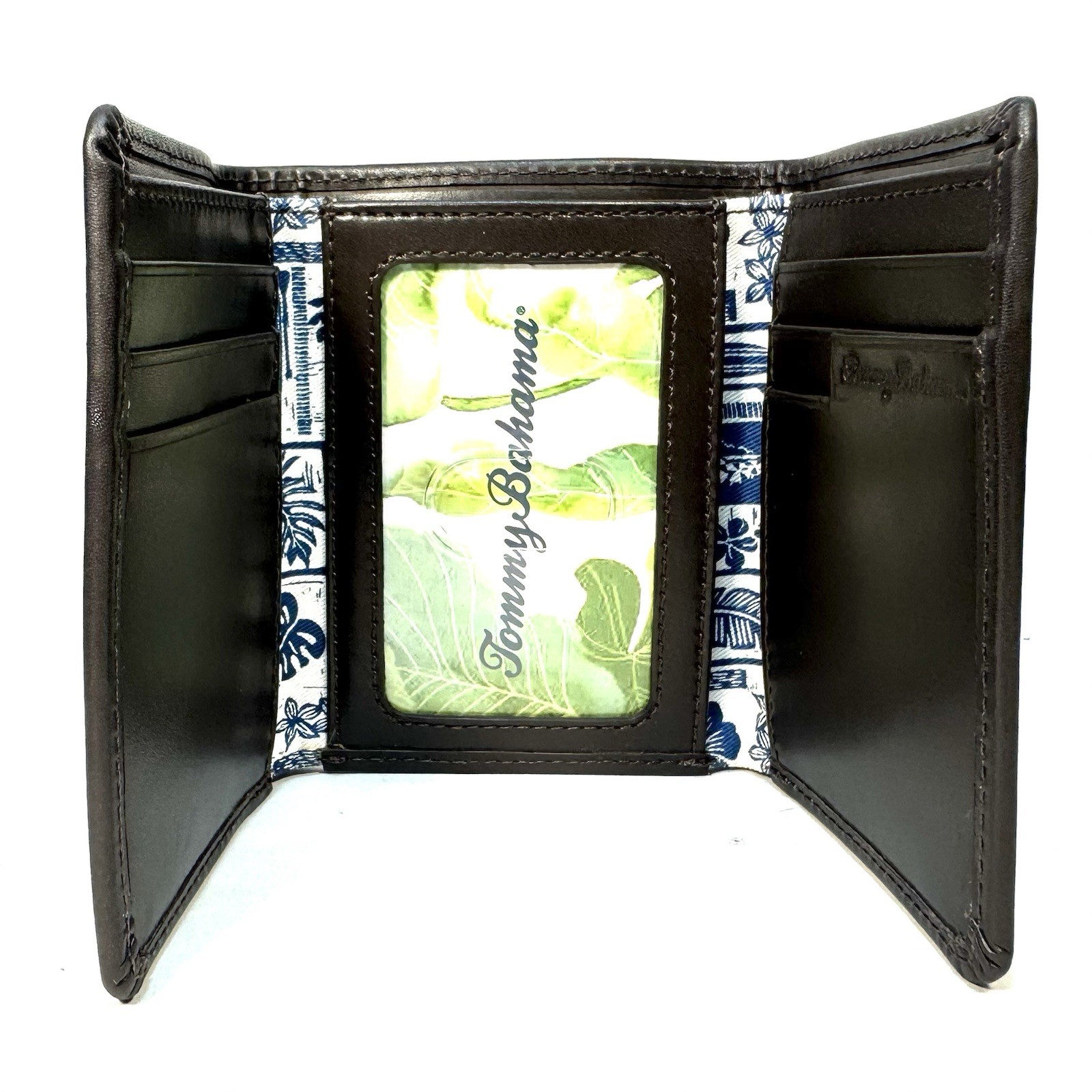 как выглядит TOMMY BAHAMA Mens Logo Embossed Trifold Leather Wallet Brown MSRP 80 фото